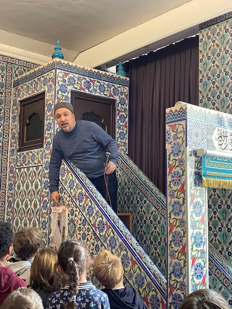 Sehr gastfreundlich wurden wir mit einem Orangentee empfangen. Im Anschluss wurden wir in den Gebetsraum gebeten und wurden in die Islamische Religion kindgerecht eingeführt. In humorvoller Art und Weise wurden die Schüler*innen eingebunden. Ein gelungener Vormittag!