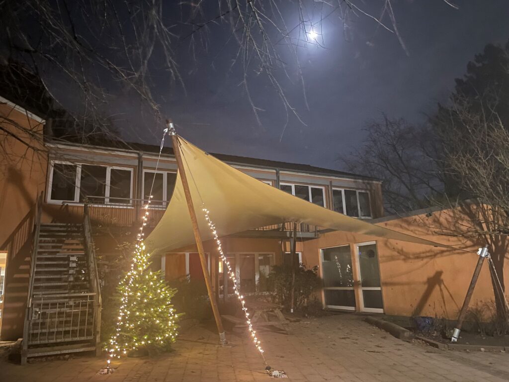 Pünktlich zum Lebendigen Advent, eine Aktion der Kirchengemeinde, konnten wir unser Allwettersegel am dritten Dezember gebührend einweihen. Ein Allwettersegel für Schatten und Regen oder auch als Rückzugsort für die Schüler*innen hat seinen Platz gefunden. Entworfen und hergestellt von einer Segelmacherei aus der Umgebung, gesponsert von den Eltern und Erziehungsberechtigten der Schule. Geplant und organisiert wurde dieses Projekt vom Förderverein der Schule gemeinsam mit der Schulleitung. Allen Beteiligten: Herzlichen Dank